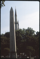 مسلة ثيودوسيوس في ميدان سباق الخيل مع مآذن جامع السلطان أحمد