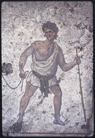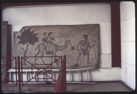 تفاصيل فسيفساء لرجل جالس وحيوانات