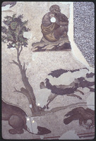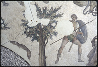 تفاصيل فسيفساء تصور صيادًا وشجرة