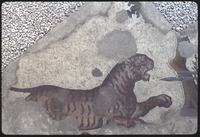 تفاصيل فسيفساء تظهر رجلاً يقاتل فهد