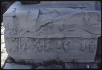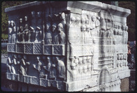 تفاصيل قاعدة مسلّة ثيودوسيوس تُظهِر الإمبراطور يقدّم أمجادًا