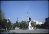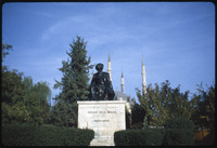 تمثال للمهندس المعماري سنان مع مآذن مسجد السليمية