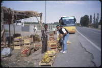 سائح يشتري التفاح من بائع على جانب الطريق