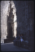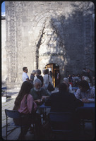 أشخاص يجلسون أمام مدخل المدرسة الياقوتية