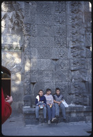 أطفال يجلسون أمام جدار مزخرف للمدرسة الياقوتية
