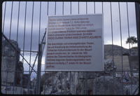 لافتة باللغة التركية على سياج الموقع الأثري