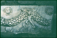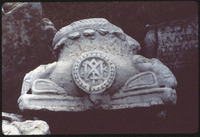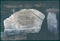 شاهد يحتوي على نقوش لغزال وقوس وسهم