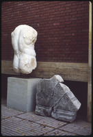 جذع تمثال وشاهد يحتوي على كتابات منقوشة