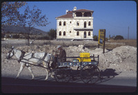 رجل يقود عربة يجرها حصان