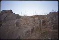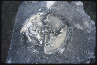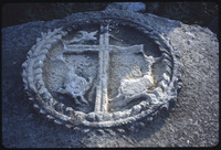 تفاصيل نقش بارز يصور صليب محاطًا بإكليل من الزهور