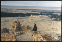 صورة لبربرا أ. بورتر أمام أنقاض منزل من طابقين في موقع سرجيلا الأثري