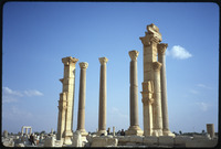 منظر للأعمدة وقوس النصر من خلال الأنقاض