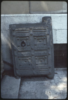 باب حجري منحوت عليه رأس