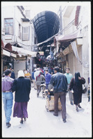 منظر زقاق تظهر فيه مباني قديمة ومشربية