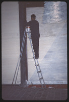 رجل يدهن واجهة محل