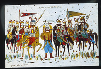 رسم فني بعنوان ملاقاة الملك ظاهر بيبرس ومعروف