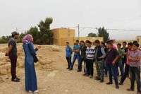 Jordan. Busayra, school group archaeological site visit and pottery activity