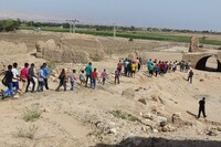 Jordan. Ghawr as Safi, school group visit to the medieval sugar factory as part of Madrasati program