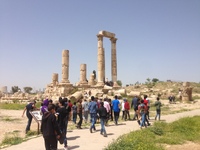 Jordan. Amman, Citadel, school group field visit as part of the Madrasati program
