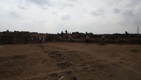 Jordan. Umm al Jimal, facade of Praetorium, large central doorway in middle (behind scaffolding), and two side doors, a typical Roman doorway treatment