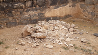 Jordan. Umm al Jimal, collection of stones made during the process of conserving the Gate of Commodus