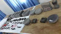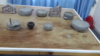 Jordan. Umm al Jimal, inside project house, jewellery and pottery made by local women's group with training in stone chisel work by UJAP and UNESCO
