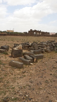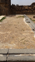 Jordan. Umm al Jimal, altar screen inside Cathedral, with grooves for a balustrade or partition and square holes for posts, the square are of the stone border which juts out on the upper right is the entrance