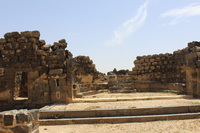 Jordan. Umm al Jimal, Cathedral, slabs in the middle are the foundation where arches start from