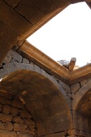 Jordan. Umm al Jimal, cruciform room in the Praetorium looking up at the ceiling moldings