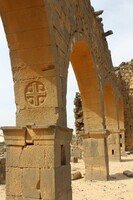 Jordan. Umm al Jimal, West Church, arch showing cross