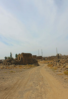 Jordan. Umm al Jimal, road from the Roman Reservoir by the Interpretive and Hospitality Center, near the southeast entrance