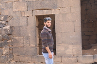 Jordan. Umm al Jimal, site steward Jehad Suleiman inside courtyard of House 49