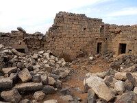 Jordan. Umm al Jimal, courtyard of a house in northern section of site, door filled in during remodeling in the 1930s