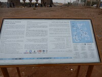 Jordan. Umm al Jimal, group of visitors around the interpretive sign for the Cathedral, views to the north