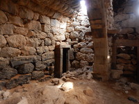 Jordan. Umm al Jimal, great room of House XIII with cattle screen for large animals