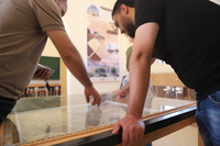 الأردن. بصيرا، يزن الرفوع في مختبر الآثار