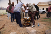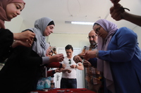 الأردن. العقبة، أعضاء فريق مشروع استدامة الإرث الثقافي بمشاركة المجتمعات المحلية خلال المشاركة في مجموعة من التجارب التي تقدمها عقباوي