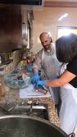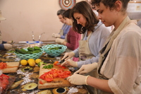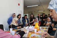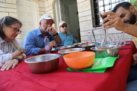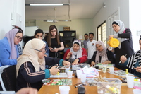 الأردن. غور الصافي، فريق المركز الأمريكي للأبحاث وأعضاء من فريق مشروع استدامة الإرث الثقافي بمشاركة المجتمعات المحلية والوكالة الأمريكية للتنمية الدولية في زيارتهم إلى مطبخ الصافي لتجربة مجموعة من تجارب السياحة الزراعية
