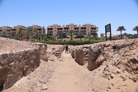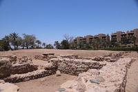 الأردن. العقبة، موقع آيلة الأثري، يظهر في خلفية الصورة فندق الموفنبيك