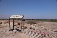 الأردن. غور الصافي، لوحة تفسيرية في موقع مصنع السكر الأثري تم تصميمها وتركيبها بدعم من المركز الأمريكي للأبحاث من خلال مشروع استدامة الإرث الثقافي بمشاركة المجتمعات المحلية