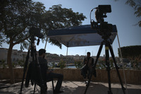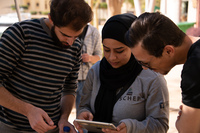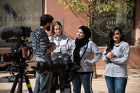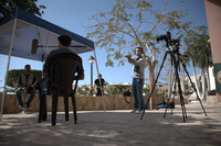 الأردن. العقبة، فريق عمل مشروع استدامة الإرث الثقافي بمشاركة المجتمعات المحلية خلال تصوير فيديو مع فريق عقباوي