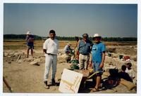 Jordan. Fr. Michele Piccirillo showing Her Majesty Queen Noor a model of the Roman street complex