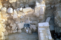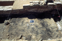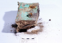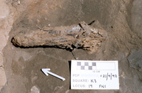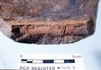 Vessel base. Close-up of "tongue". Refer to CS 25/33-37. - Sq. B2. Studio. Locus 12/Pail 56. Reg #PCP .0053.