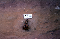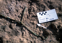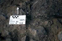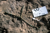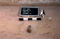 View to north. Close-up of iron object in-situ. CS only. Refer to CS 38/ 22, 23, & 24. - Sq. F2. Locus 18.