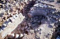 Close-up view to east of Cu/Cu alloy door hinge in-situ. (refer to CS 38/6-7) - Sq. B2. Locus 12/FN6 & 7.