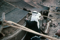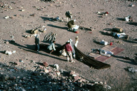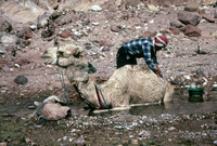 Jordan. Petra, unloading camel from tent