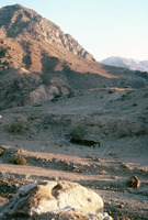 Jordan. Petra, Bedouin tent erected in valley