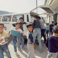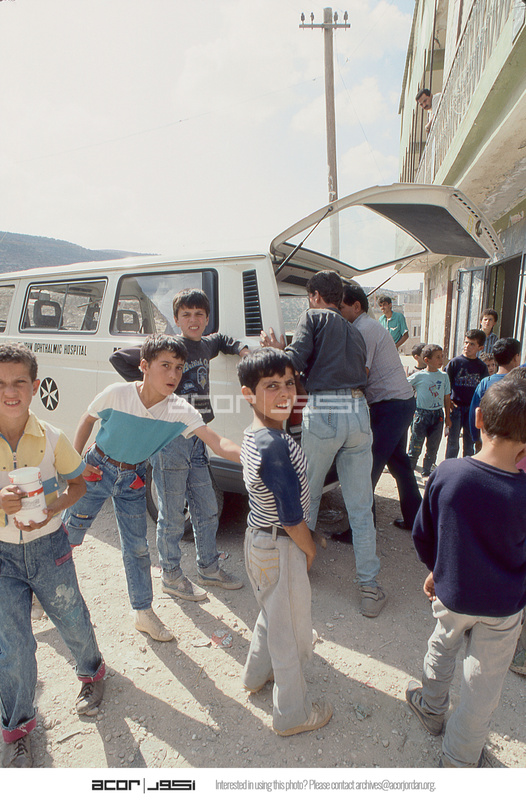 Palestine. West Bank. St. John Ophthalmic Hospital minibus in Beit Fureek village on Outreach visit