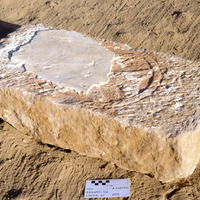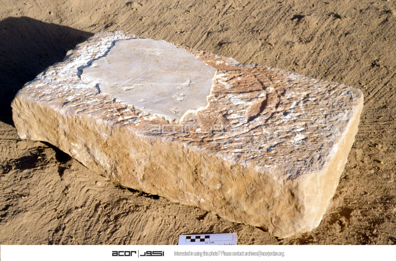 Ashlar(+ plaster) with incised cross. Ex-situ. - Sq. D2. Locus 21/AP8.