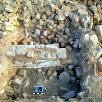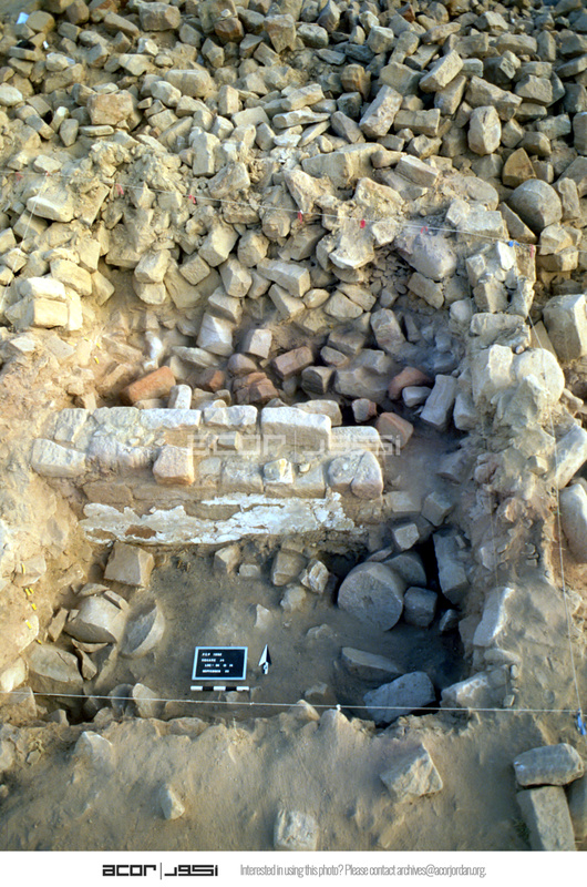 Aerial view to north. - Sq. J4. Loci 04(wall), 13, & 14.